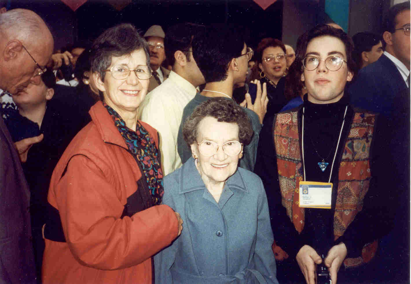 L to R: Avril Davies, Ada, Christine Wagg, Stuart Sweet, Margaret Sweet – some of the Welsh contingent at the World Congress, New York, 1992. Brigitte Beales in foreground