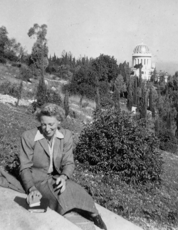 Towards mid-day, suddenly came bursting into our little sitting room Mohammad Bahá’í, the Guardian’s chauffeur, in search of me, with a message from Rúhíyyih Khánum. He had just brought her back from a visit to her doctor and she wanted to see me to say goodbye before my departure. He was to take me over to her right away. The sun was shining, the morning was warm and there across the road she was sitting on the low wall beside the path leading to the door, and she called me to go up and sit beside her. Then she began chatting to me as if in the company of a close old-time friend, in whom it was natural to confide, sitting relaxed upon a wall. In total contrast to the stiff silent awkwardness I had manifested while drinking tea in the gatherings, in her sitting-room I felt so natural and so much at home perched beside her on the wall, and was no longer tongue-tied, as we laughed and talked together. I realised that she had been holding audience in her sitting-room, getting up for weeks when she should have been in bed, because she could not bear to miss the pilgrims who had come so far, and especially the Persian ladies who met her only at those times. Her adorable soul that I had so eagerly hoped to recognise on this special pilgrimage was fully revealed to me. I felt her love and loved her in return. She told me how pleased she was that I had been able to come and continued by adding. “When we heard here in Haifa that you had become a Bahá’í I said to myself that this new Bahá’í must be a little old lady and that was how I imagined you until you came here. I am so glad to find how wrong I was and to know now that you are so young with many years ahead for service to the Cause”. Among other topics of our delightful conversation was one relating to the official dinner-party held a few nights previously. She expressed sorrow that because of it we had been deprived of the company of Shoghi Effendi and explained that it was a rare occasion for such an event to take place but sometimes it was necessary to invite Israeli officials to dinner on account of the standing of the Faith in Israel. She rated the social intercourse of the occasion as utterly worthless, “all froth” she called it. She had a gift to give me, a lovely white jumper that a Persian believer had lovingly knitted for her but in a size a good deal too small, but perfect for me. I was so happy that when I shortly had to part company from all the loved ones who had made me such a happy member of the family for the past ten days, I could savour this last heavenly encounter to alleviate the sadness of transition to the busy, noisy world of self-seeking, and rejoice too in memory of my last contact with the beloved Guardian as he bade me farewell. He said he would pray for my spiritual growth and that I would be victorious always and he invited me to come back again to Haifa.