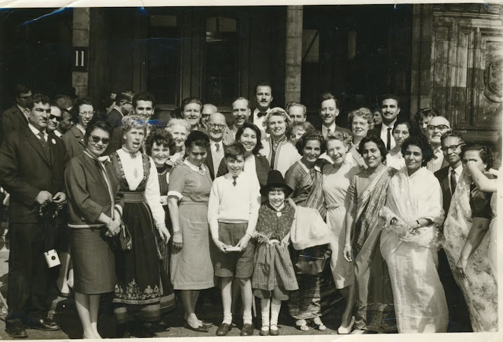 Shirin Fozdar visited us here in Caerphilly. Eric had her to talk to the ladies in the Council chambers and they gave her the freedom of Caerphilly. She also went to Pontypridd. Cardiff was an LSA and we had Nineteen Day Feasts with them. Charles Dunning was there; he was a Knight of Bahá’u’lláh. He was so thrilled when I became a Bahá’í and wrote me a letter. He used to visit us and was a wonderful Bahá’í. We were very privileged to take part in his funeral service. David and Barbara Lewis were also in Cardiff and we were privileged to be at their wedding. Eric was one of the first Bahá’ís in Wales and was on the first Welsh Teaching Committee which was held in our home on 16th November 1960. Meherangiz Munsiff visited us too and spoke to a church sisterhood. We have had many wonderful Bahá’ís in our home and were privileged to go to the first World Congress in 1963 in the Royal Albert Hall where they announced the first Universal House of Justice. It was a great thrill and we, the Bahá’ís of Wales, all travelled in cars to this and had a picnic on the way. There were so many different nationalities there and all in national dress and Corinne, our daughter, only 7 then, wore her Welsh costume. She was friendly with a little Japanese girl who also had her national costume on. It was very well organised. The Albert Hall was full to capacity with Bahá’ís. You had to have credentials to get in. One evening was devoted to non-Bahá’ís. Hand of the Cause William Sears gave a wonderful talk. It was a wonderful conference – everyone so happy and full of love.