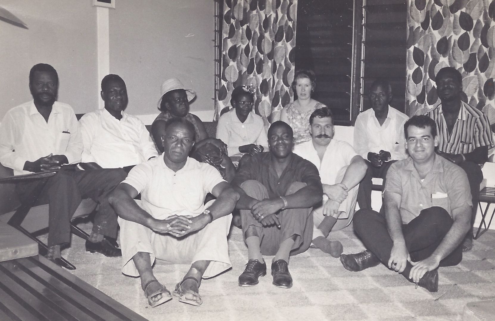 The first spiritual assembly of Mackenzie, Guyana. Seated on the right of the photo is Anthony Worley, Auxiliary Board member for the Guyanas
