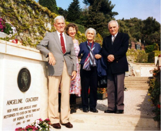 Visiting Mrs. Giachery’s resting place during the Jubilee in Monaco. (L to R) Leslie Kelley, Knight of Bahá’u’lláh Florence Kelley, Mrs and Mr Nakhjavani