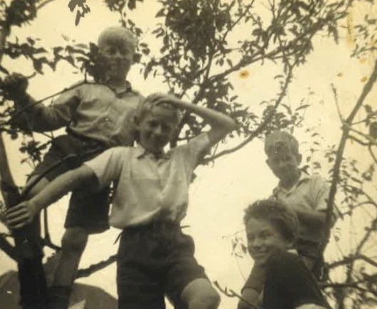 Brother Peter top right, brother Barry top left. Viv centre, a friend bottom right