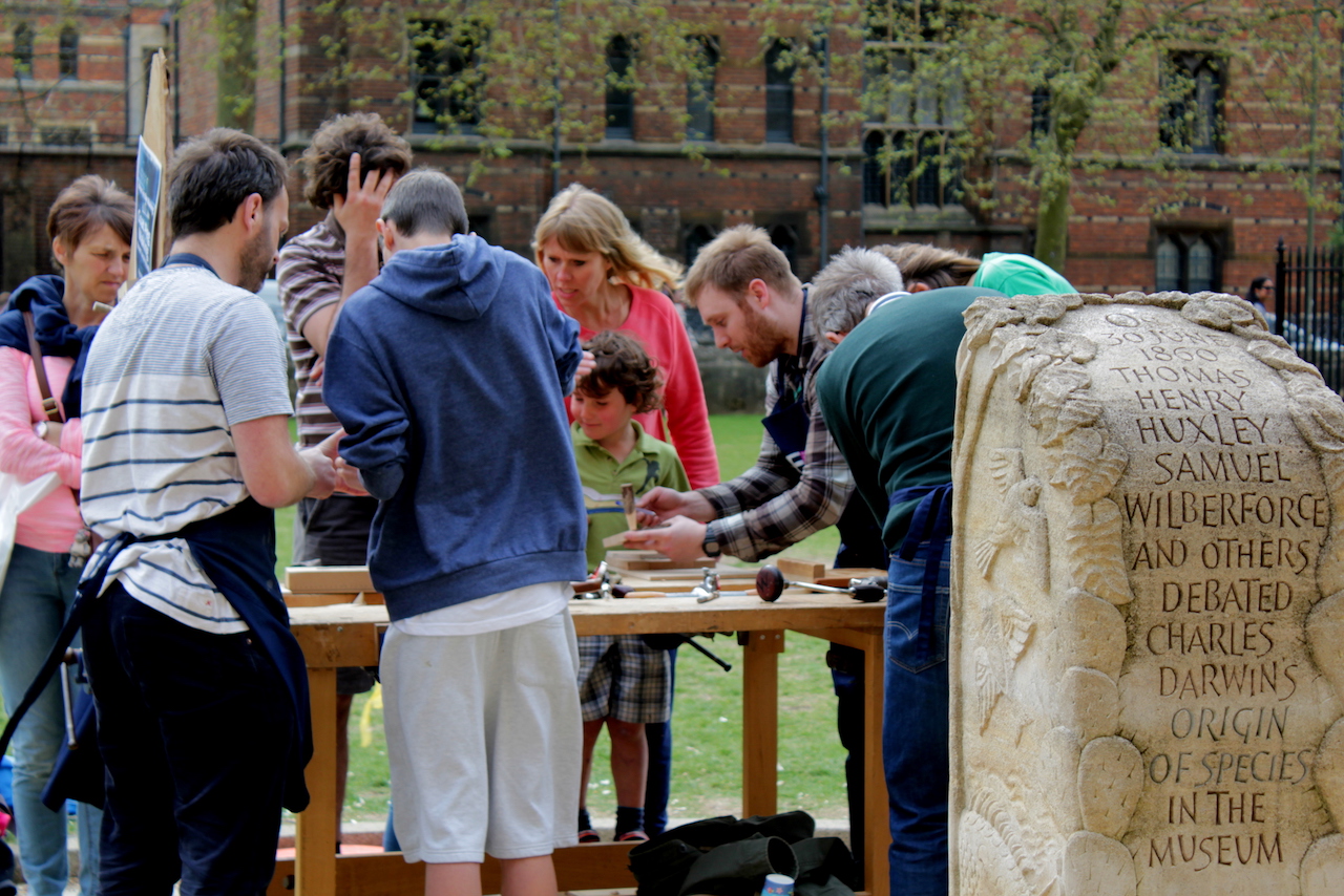 Woodworking sessions were popular across all generations and took place in front of the historic museum