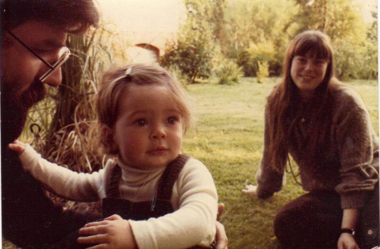 Jonneke aged one, with her parents at Philip’s mother’s home near Henley-on-Thames