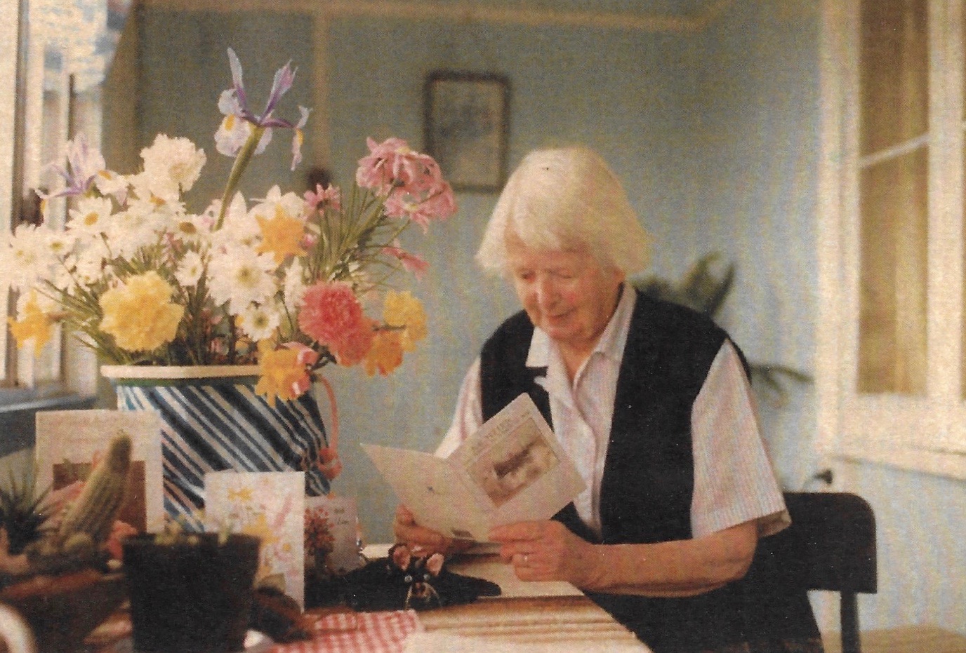 Gradually, ailing in old age, she could no longer attend Bahá’í meetings and was confined to her council flat. Her daughter Gillian was a constant carer/helper for her daily needs.