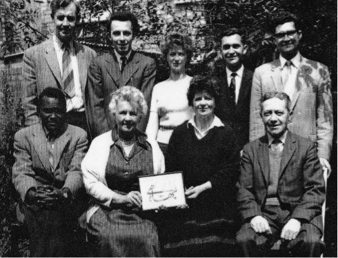 Left-Right standing: Patrick Dawson; Margaret Magill; Eleanor O’Callaghan; Hand of the Cause William Sears; Lesley Taherzadeh; John Turner (junior); Zebby Whitehead.