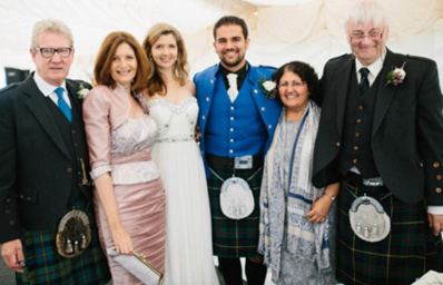 Summer 2014 was Kamran and Louisa Macleod’s wedding: Left to Right; Murdo Macleod (Louisa’s father) Jane Cameron Saunders (Louisa’s Mother), Louisa, Kamran, Mina and Ray.