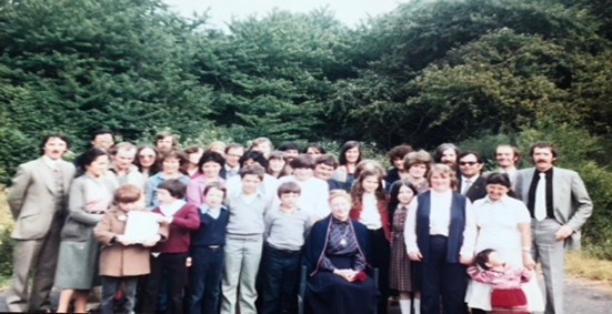 Summer 1985, with some guests – Seated Front Row Left to Right sitting on the floor; Ray Sheppard, Daniel Day, Rhiannon Sheppard, Helen Bartlett, Nathan Bartlett, Barry Bartlett, Parivash Lumsdon (nee Froughi). Seated on chairs Left to Right; Rosemary Sheppard (Baby) with Mina Sheppard, Ridvan Moqbel, Alma Gregory, Sandi Humphry. Standing Left to Right Mags Bartlett (Baby) Harold Lane, Traneh Sheppherd, Roddy Grant, Allan Grieve, Ann Moqbel, Viv Grant, Ann Shaw, Peter Bird, Rachael Buckett ( nee Payne), Joseph Roy Sheppherd, Sandi’s friend.