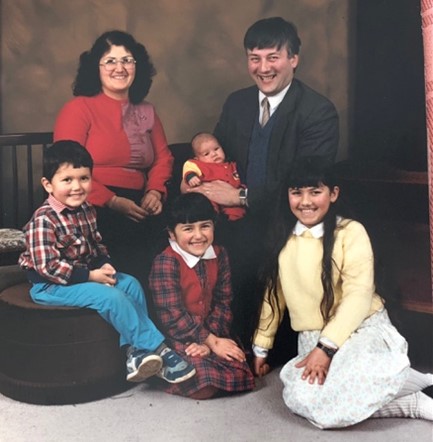 January 1990 family photo: Left to Right, Kalim (3), Mina, Rosemary (5), Kamran (4 weeks), Ray and Rhiannon (10)