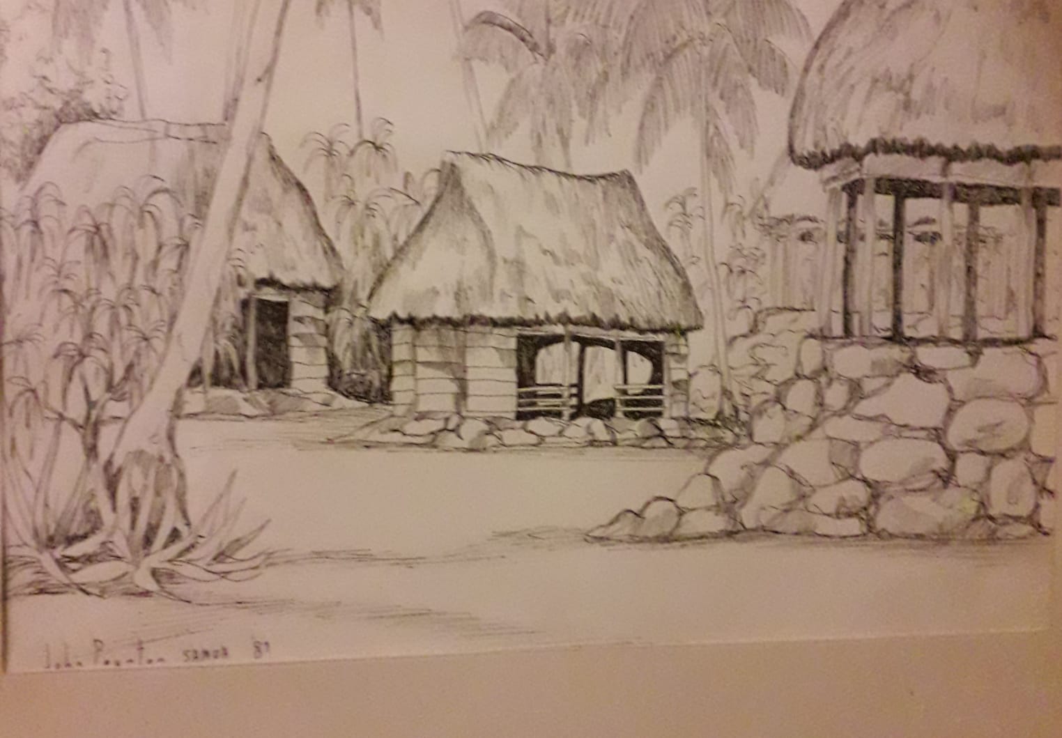 We landed in Samoa, and these were my first impressions: feeling the tropical heat surrounding us, bewildered by the new culture, the greenery, the lack of ‘proper’ houses, the men and women wearing lava-lavas in clashing colours, the new smells and sounds, and so many children everywhere. There was only one metalled road, and you couldn’t really tell where the town started and ended; the traditional houses or fales were mainly platformed, with thatched roofs and open sides, and lots of tropical greenery everywhere around. After a first night in a hotel, we were given a prefabricated house, fairly basic by European standards but with mod cons such as a fridge and washing machine that were not available to most Samoans. We learned to find our way around; we found that our pushchair didn’t work, because of the gravel roads and paths.