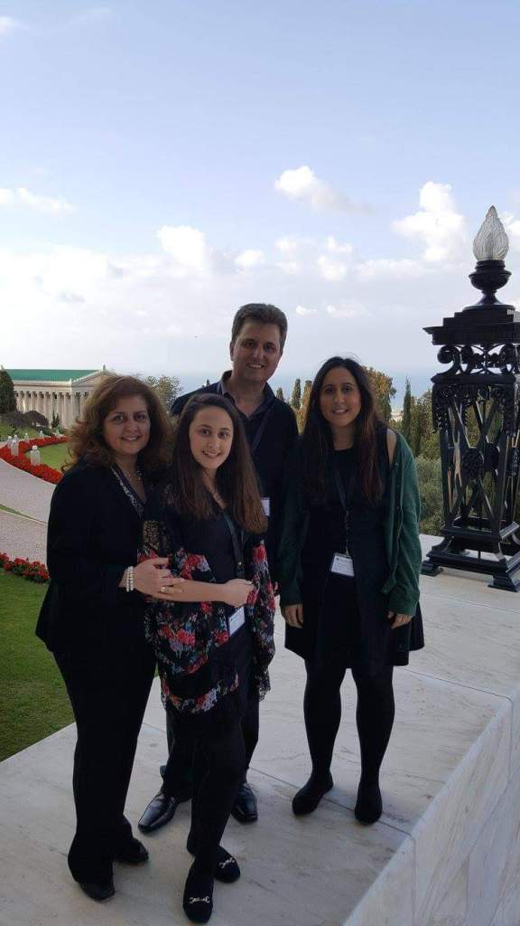 With the political turmoil of the 1980s and 1990s, my official enrolment was delayed until June 1991. I was interviewed by the National Assembly about why I wanted to declare. By that time, I was engaged to Behnam who was a Bahá’í and we married in November 1991. The marriage provided me with more freedom to practice my new faith and I plunged into work on various committees and the Local Spiritual Assembly of Wandsworth. My two daughters Romina and Ariana are both active Bahá’ís.